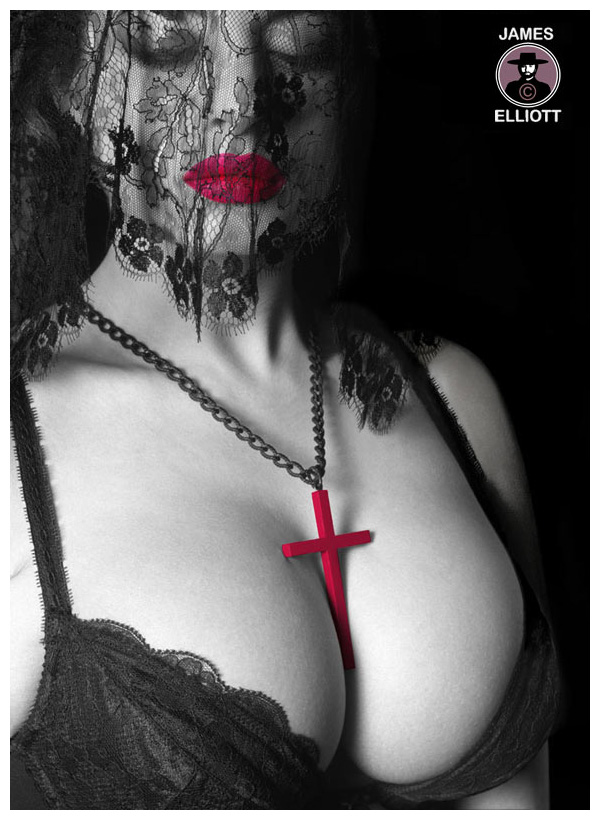 The lady in this picture is actually wearing Chantilly lace and there is none more aesthetically pleasing. Most lace looks cheap as chips (and is) but this looks rather expensive (and is). It is made on the old machines in pieces and rather like fully fashioned stockings, needs a seam. Elliott's visual, dark and mournful dirges go right back to the beginning with his first art picture "Under Grave Snow'. The best Chantilly laces were made of black silk and were widely used for mourning. Fabulously expensive and fabulously beautiful, Chantilly lace also appears in Neo Goth masterpiece 'Ashes Roses and Lace'. This juxtaposition of glamour and death is highly unusual, even for Elliott, but makes for a very powerful Art.